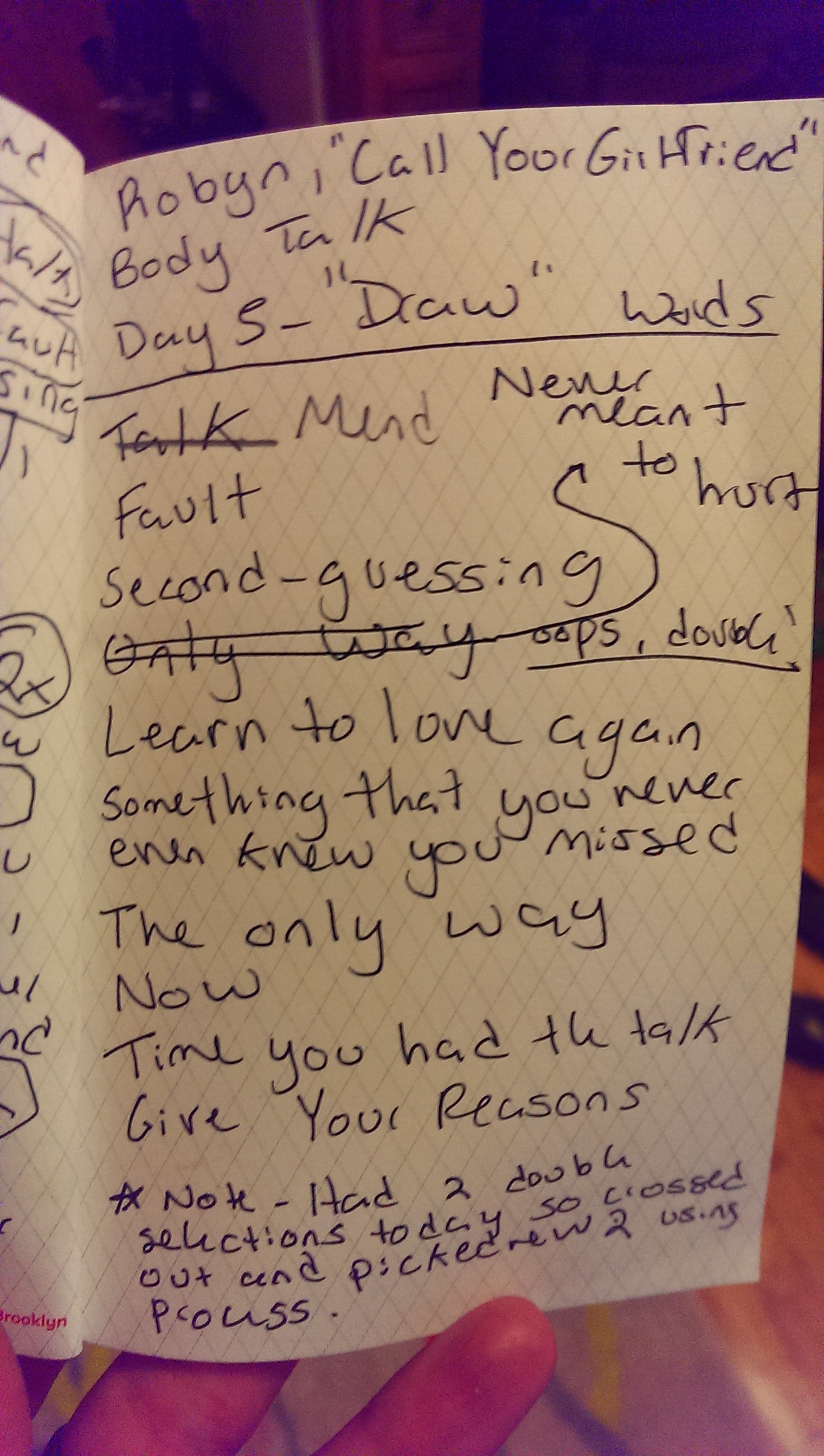 Here are the words. I had to go back a few times since I actually repeated a couple of the words, so using the process picked the next 3 instead.