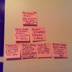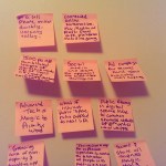 - Finally, I added the questions to the wall (I managed 3 that I liked) and rearranged the notes I needed around each to get some directions for further exploration