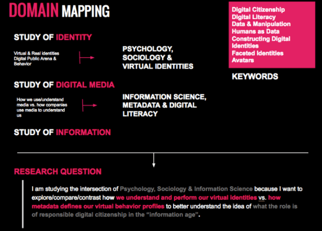 Next I did a quick domain mapping exercise to see how I could frame my research question in terms of current academic domains and communities of practice.