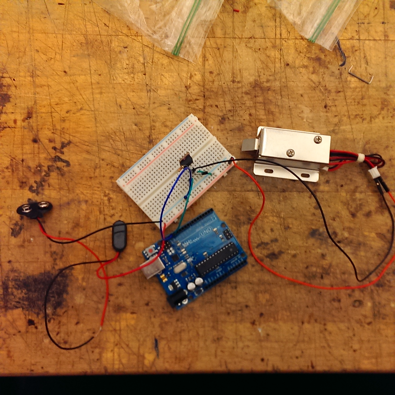 However, the big problem I had with these locks was how to power them. I’m not really an expert on Arduino, and I knew that they needed at least 12v to run, while my board only provides 5v max. So I knew I had to run them from an external power supply, but somehow not fry my board. Great….
