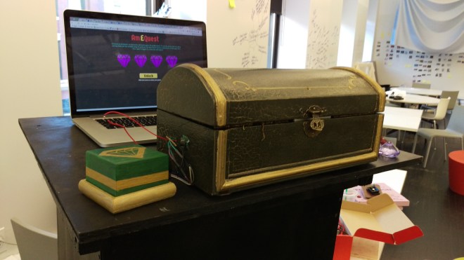 Learn about my midterm IOT project, AmEQuest, an interactive treasure hunt with RFID enabled gems that allow you to unlock a real treasure chest from a website and claim your prize.
