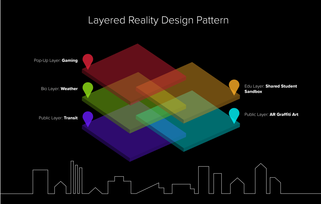In order to solve for the challenge, we designed a paradigm for ‘layered reality’, layers of mixed and augmented reality that can be programmed separately.